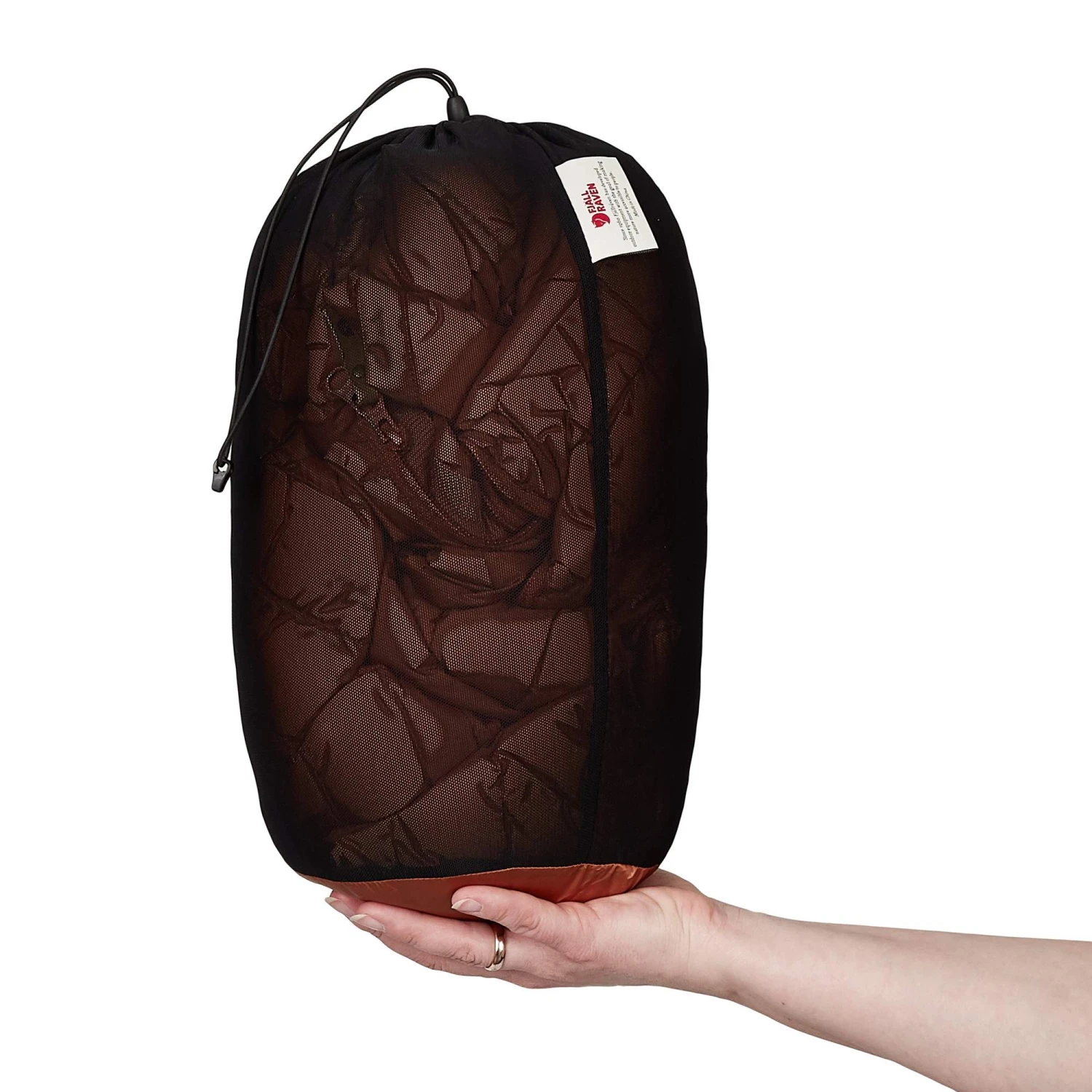 Die Gänsedaunenfüllung mit komplett rückverfolgbaren Daunen gemäß Fjällrävens „Daunenversprechen“ sorgt auch bei eisig kaltem Wetter dafür, dass du nicht auskühlst. Die daunengefüllte, verstellbare Kapuze, die Stulpen in den Ärmelbündchen und der hohe Stehkragen halten die Wärme im Inneren des Parkas und hindern kalten Wind daran, in den Parka einzudringen.
