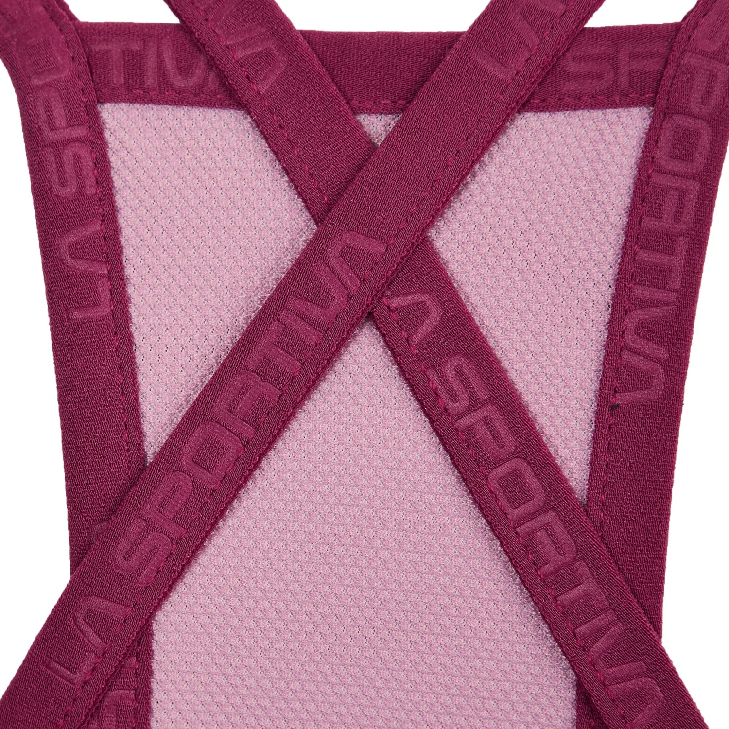 Du kannst es zum Beispiel bei schweißtreibenden Klettersessions solo tragen oder als klassisches Sport-Bustier. Das doppellagige Material und der breite, perforierte Elastikbund sorgen für einen guten Sitz.