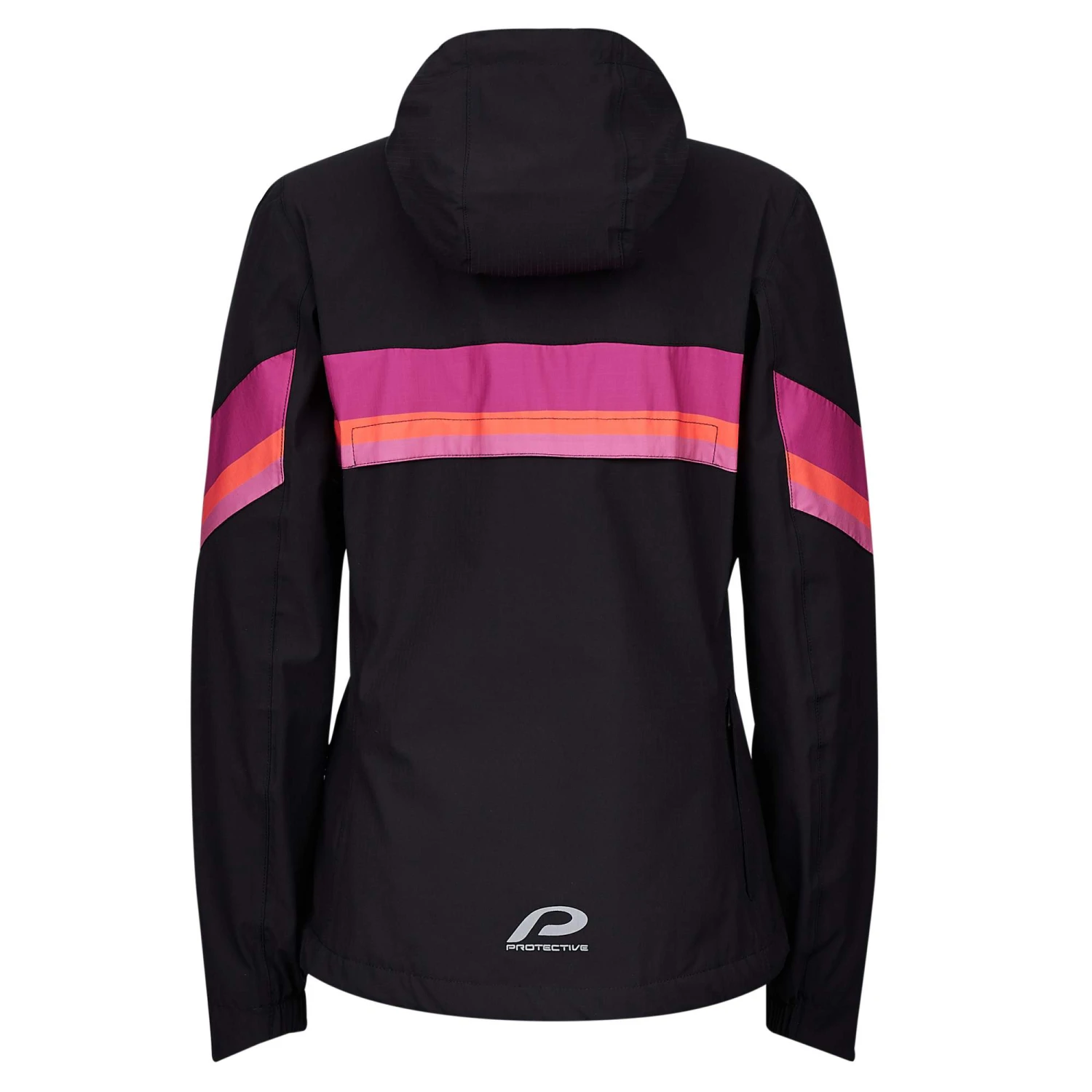 Eine farbenstarke Fahrrad-Regenjacke mit besonderem Schutz: Dank eines eingenähten Flaps an der Rückseite, das du ausklappen kannst, bist du zusätzlich vor Schmutz und Nässe geschützt.