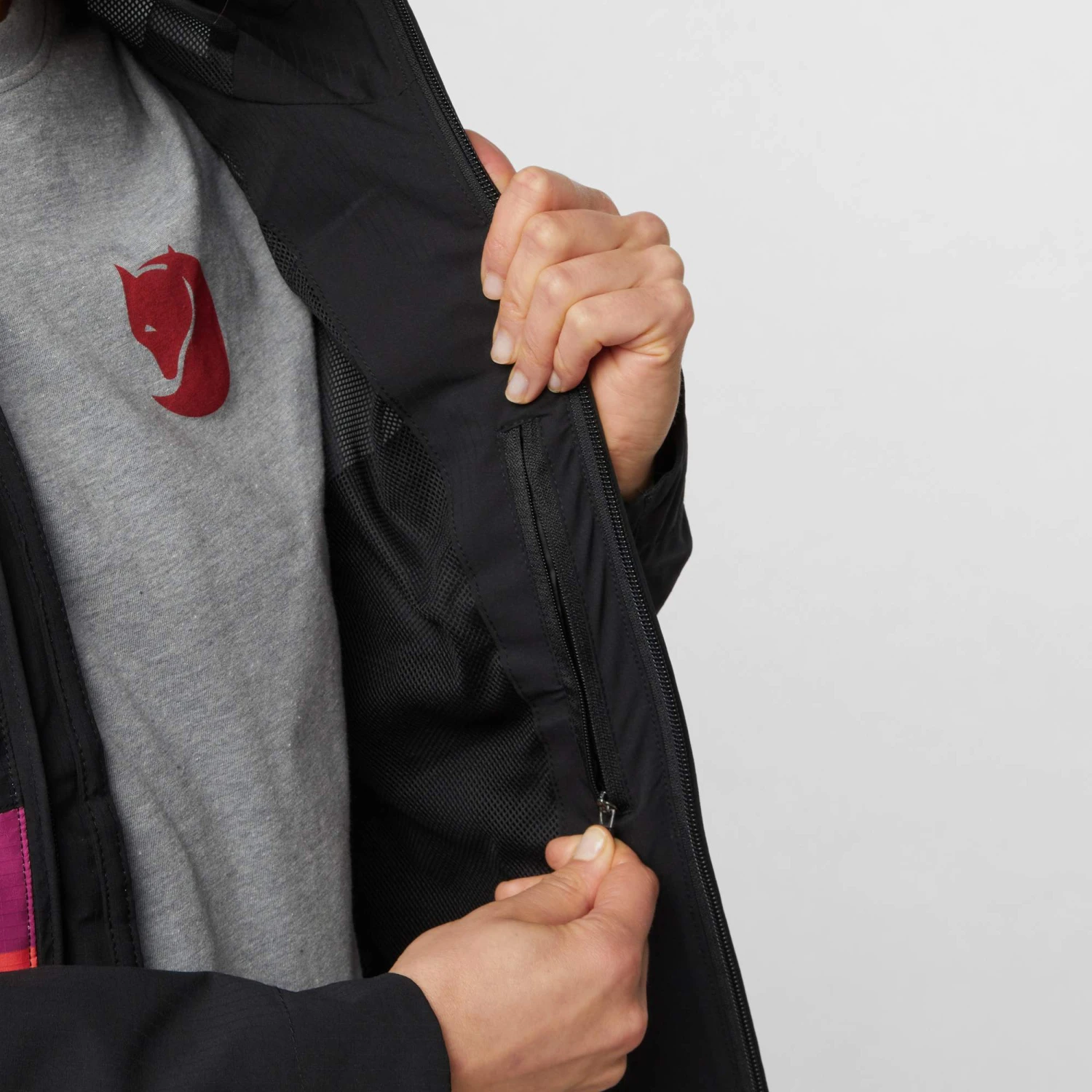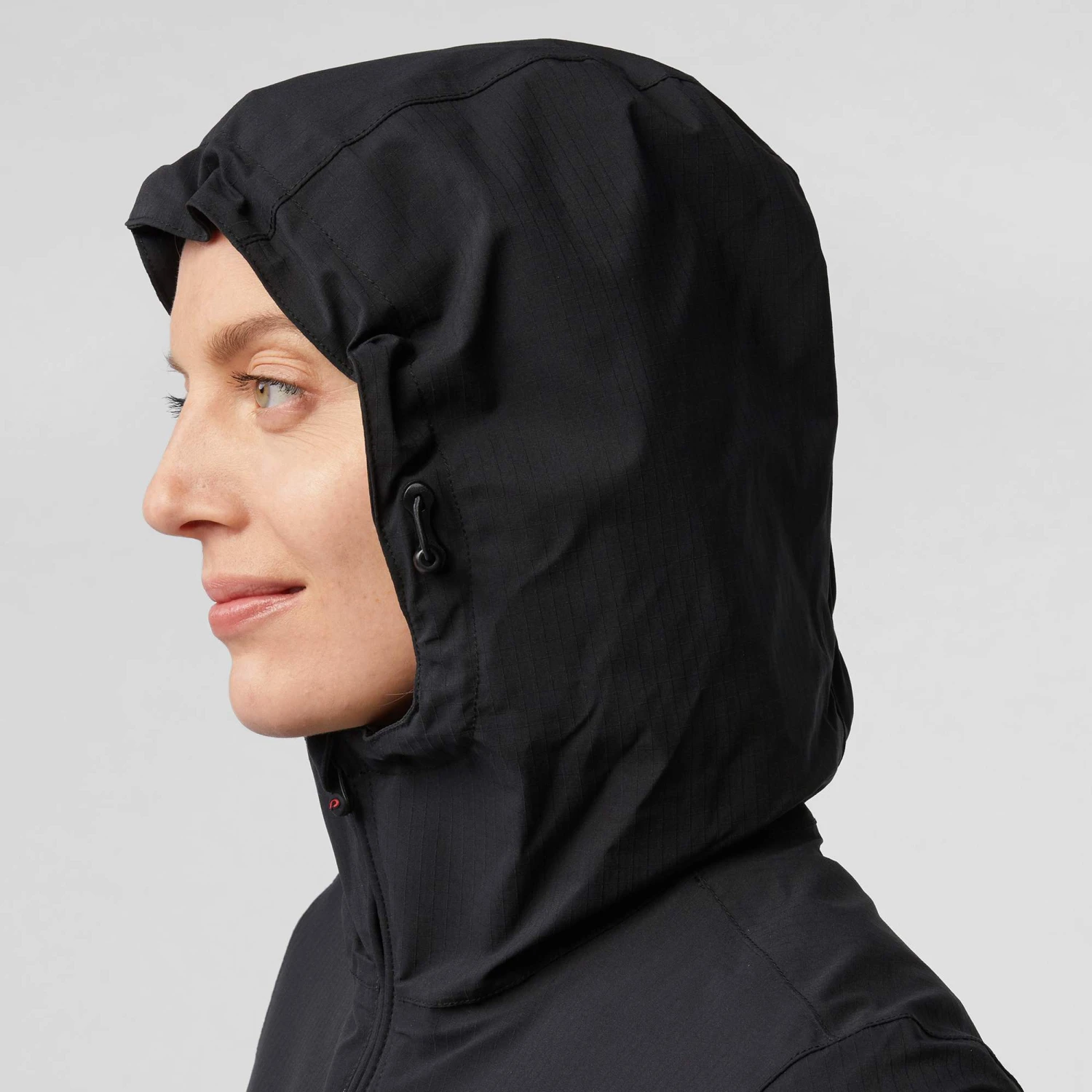- Angeschnittene, vorne einstellbare Kapuze