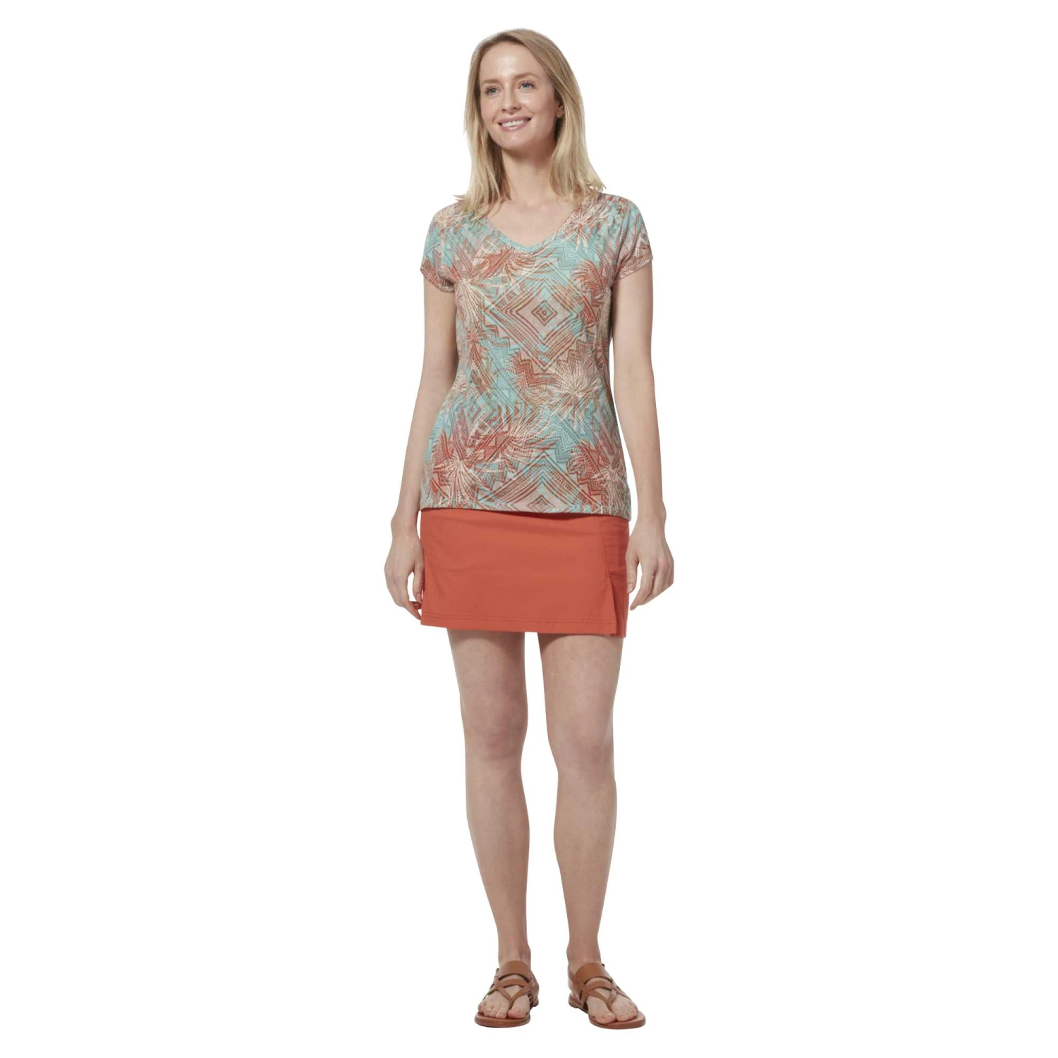 Das luftige Material vereint Baumwolle und Polyester. Diese Materialkombi lässt entstehende Feuchtigkeit recht zügig verdunsten; damit bietet das Featherweight Tee angenehm trockenen Tragekomfort. Dadurch trägt sich das Shirt auf Reisen in warme Regionen sehr angenehm.